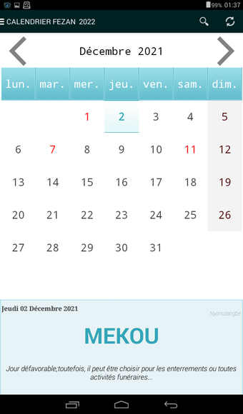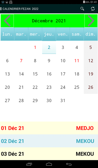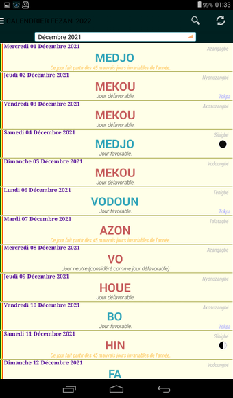 CALENDRIER FEZAN 2023 ที่พัฒนาโดย H@rdS☼ft Inc. เป็นปฏิทินที่มีต้นกำเนิดอยู่ในอดีตและใช้ระบบจันทรคติ - ดังนั้นมันจึงมีข้อมูลที่ละเอียดอ่อนเกี่ยวกับการเกิดของดวงจันทร์ในแต่ละปี